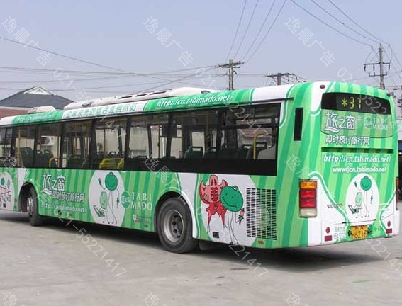3、现代车身广告一般采用电脑喷绘户外背胶粘贴。