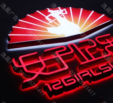 制作工艺:将高分子亚克力板进行反面雕刻,掏空字壳,再反过来进行正面雕刻,得到字壳。再雕刻一层底面亚克力板,装入LED灯,把底板和面板用有机胶水粘合。侧边贴喷砂即可完成。