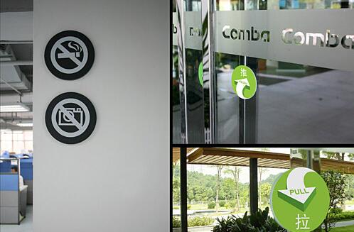 在每栋大楼的大厅、楼层和电梯口处,以及在整个建筑的内外部空间都相应的分布着清晰而完善的导向、定位、指引信息。系统设计的风格简约而理性,传递的信息直观、易读,大大地简化了员工和来访者寻找路径的程序。