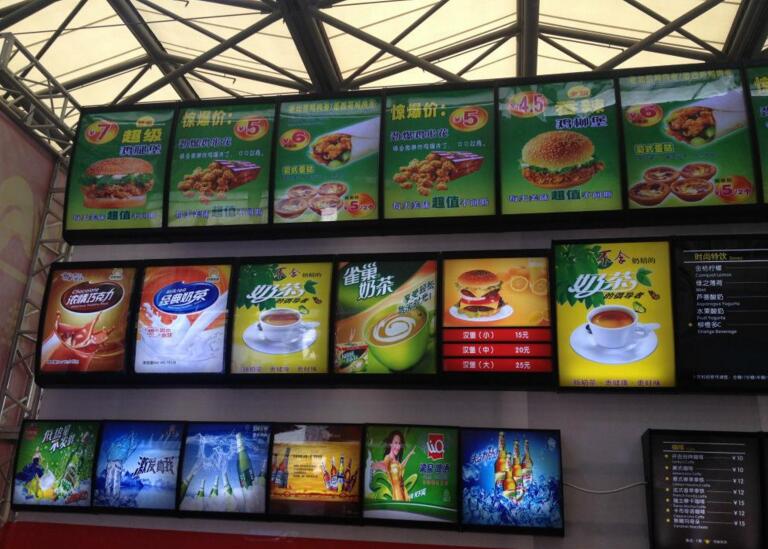 肯德基、麦当劳灯箱属于餐厅灯箱,餐厅灯箱也叫点菜灯箱,一般分为两种:弧形灯箱,转动灯箱,转动灯箱也叫三面翻灯箱,它的设计基础是在孤形灯箱的基础上进行改制的。早期餐厅灯箱都是以弧形灯箱为主,像我们见的最多的是奶茶,休闲快餐多用于此类灯箱,但随着餐饮的竞争与发展,一些大型的国际快餐厅,例如肯德基、麦当劳开始加入早餐系列和中餐系列,这就要求点菜灯箱要随时间来更换菜单,于是,聪明的设计人员设计出来可以转动的三面轮换灯箱(有的是两面,如上图,这是早期的肯德基双面转动灯箱),随着时间更换菜单的时候,工作人员只需转动上面的的灯相就可,非常方便。有兴趣的朋友可以赶在换餐的时间去肯德基 或是麦当劳餐厅去看下。一般是在10点左右,早餐与午餐轮换的时间段。