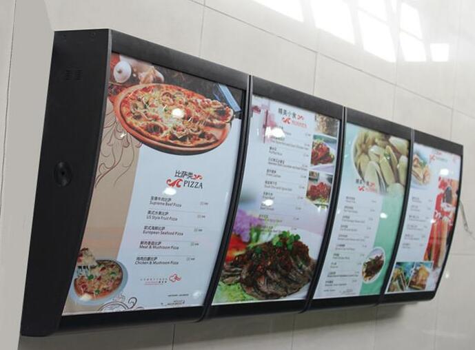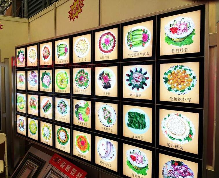 点餐灯箱的箱体上下采用的边是铝合金灯箱型材,点餐灯箱的左右侧边采用塑料挤压板,美观结实大方,目前各大食品店大都采用这种方式来做广告宣传。