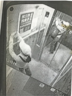 该女子在电梯间贴小广告监控录像截图。